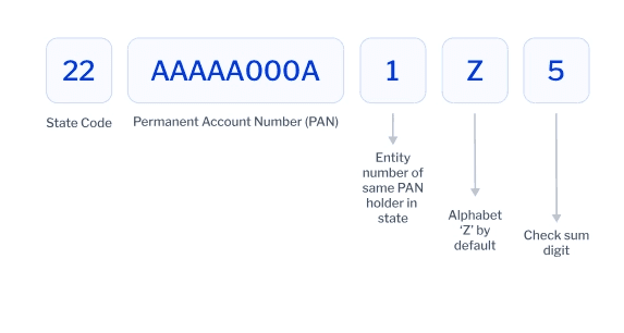 A GST number follows a standardized 15-digit format, where each part has a specific meaning: